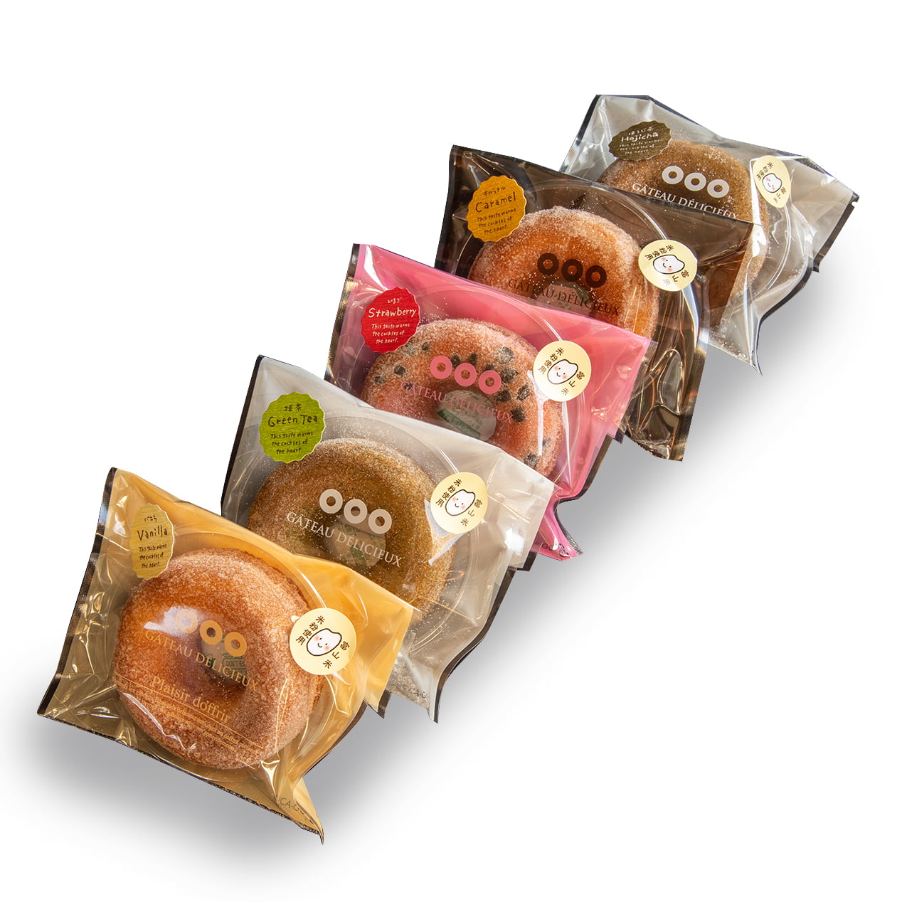 ドーナツギフトセット 5個入り ドーナツギフトセット 5個入り bake5 在庫状態 : 在庫有り ¥1,250(税込) 数量 富山米の米粉を使ったヘルシーな焼きドーナツ。 バニラ、抹茶、ほうじ茶、いちご、キャラメルの5種類をセットにしました。 原材料 バニラ 卵・富山米粉・バター・砂糖・香料・膨張剤・はちみついちご 卵・富山米粉・バター・砂糖・香料・膨張剤・苺強化果汁・チョコほうじ茶 卵・富山米粉・バター・砂糖・香料・膨張剤・はちみつ・ほうじ茶パウダー抹茶 卵・富山米粉・バター・砂糖・香料・膨張剤・はちみつ・ごま キャラメル 卵・富山米粉・バター・砂糖・香料・膨張剤・はちみつ・キャラメルパウダー 内容量 5個入り 賞味期限 発送日より2週間 保存方法 直射日光を避け常温で保存してください。